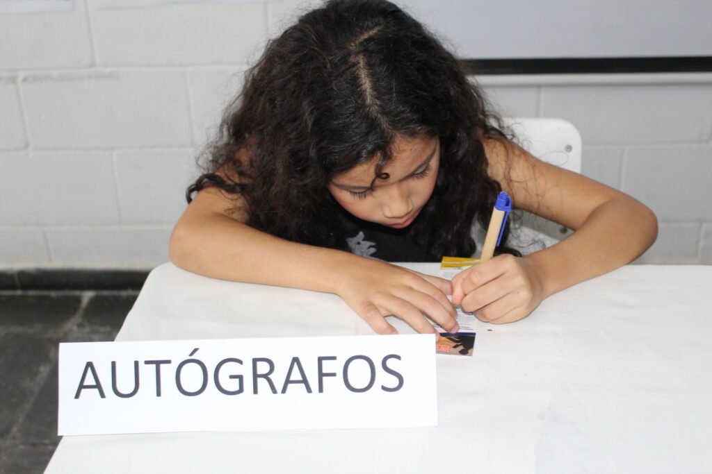 Os pequenos escritores fazem sucesso na Escola Aberta no momento de autógrafos de seus livros digitais!