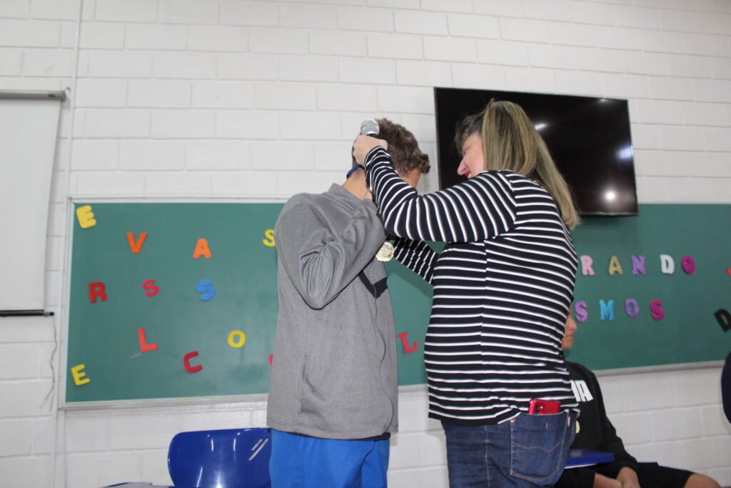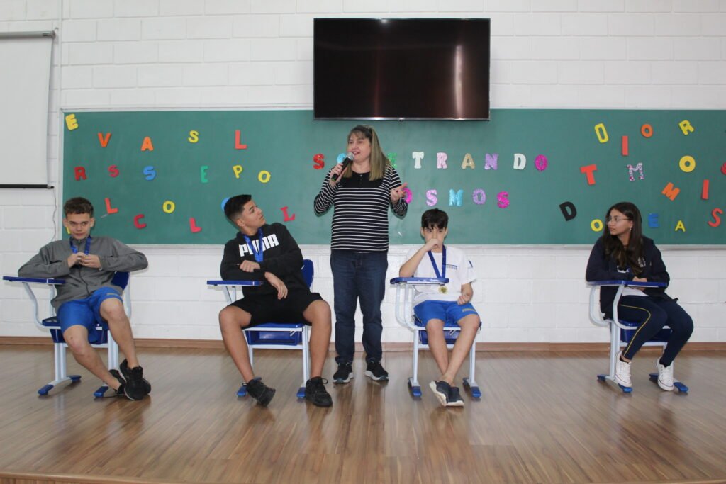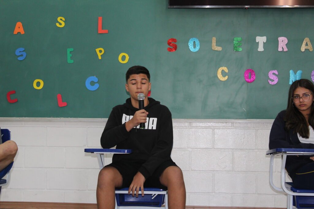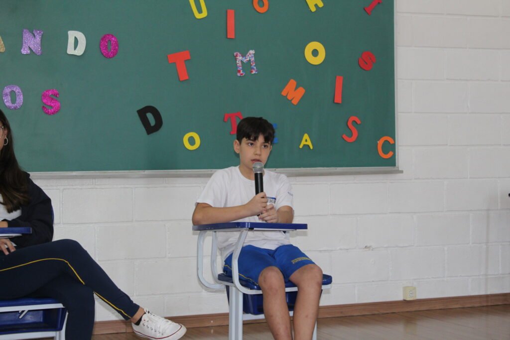 Tal projeto tem sido desenvolvido desde o início do ano letivo e terá sua finalização nesta sexta-feira, dia 26 de maio, com os alunos finalistas do 6º ao 9º Ano do Ensino Fundamental: Thiago Floriano (6º Ano), Lays Ferreira Santos (7º Ano), Kauã Almeida Soares (8º Ano) e Augusto Mori Alves (9º Ano).